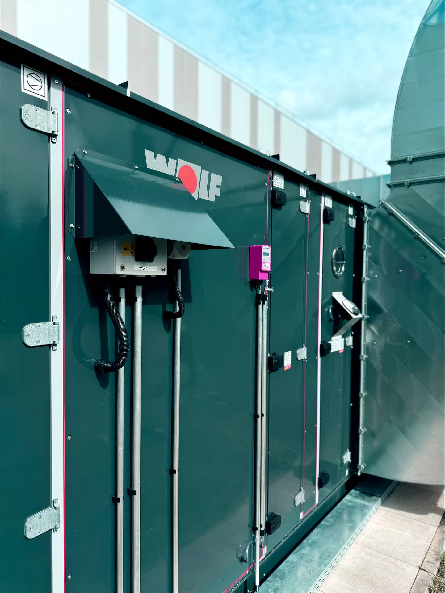 - Gesamtanzahl RLT-Anlagen: 6 Stück, Hersteller Wolf, Gesamtluftmenge circa V=100.000 m³/h